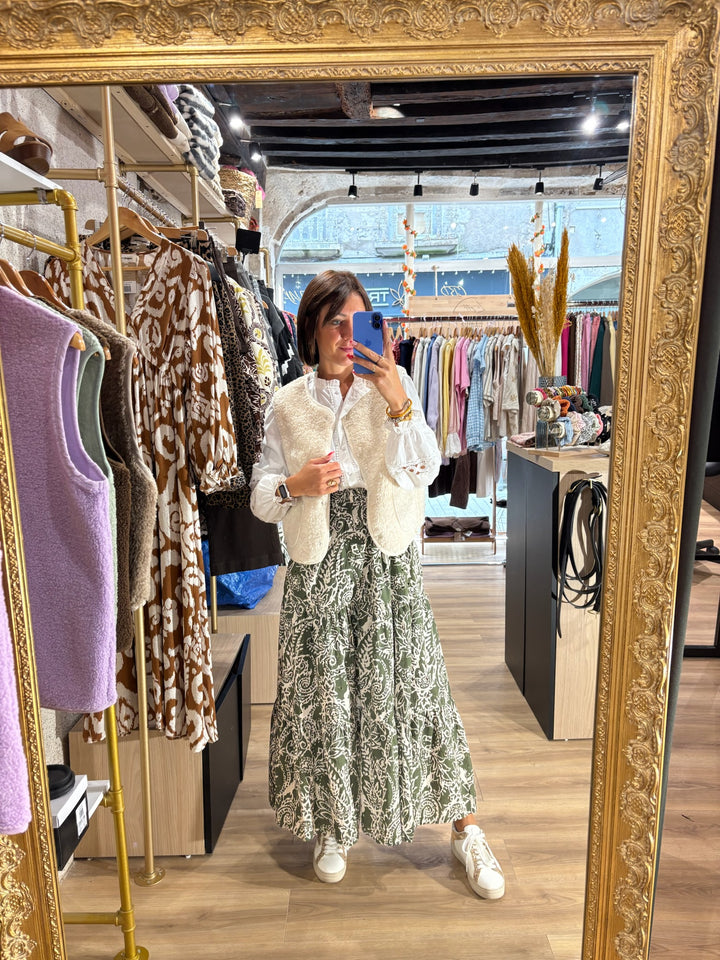 Jupe kaki brodée