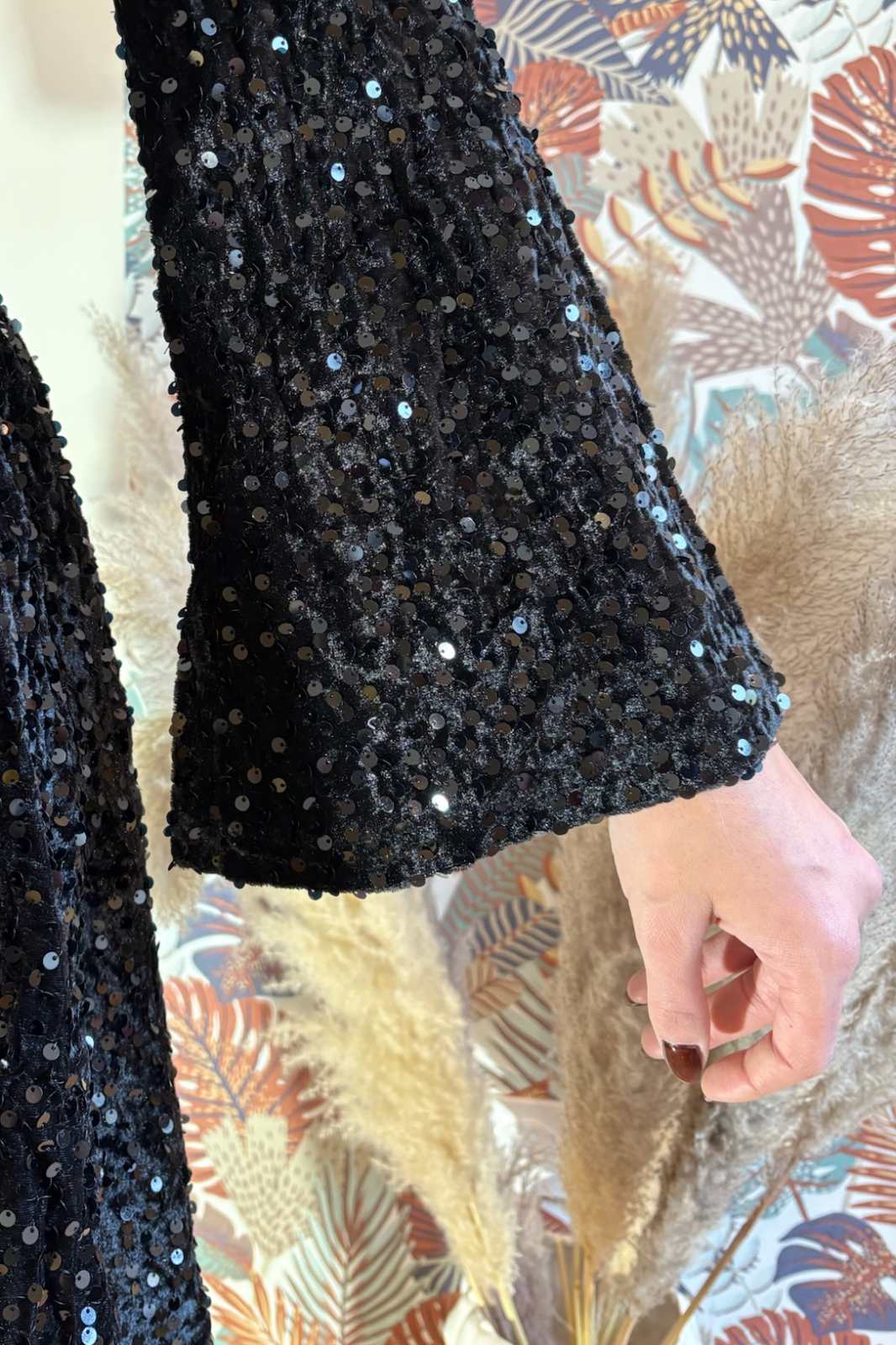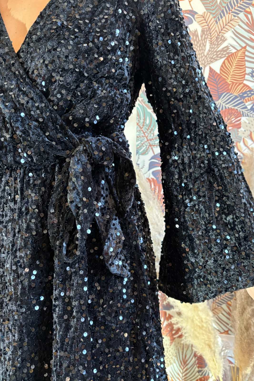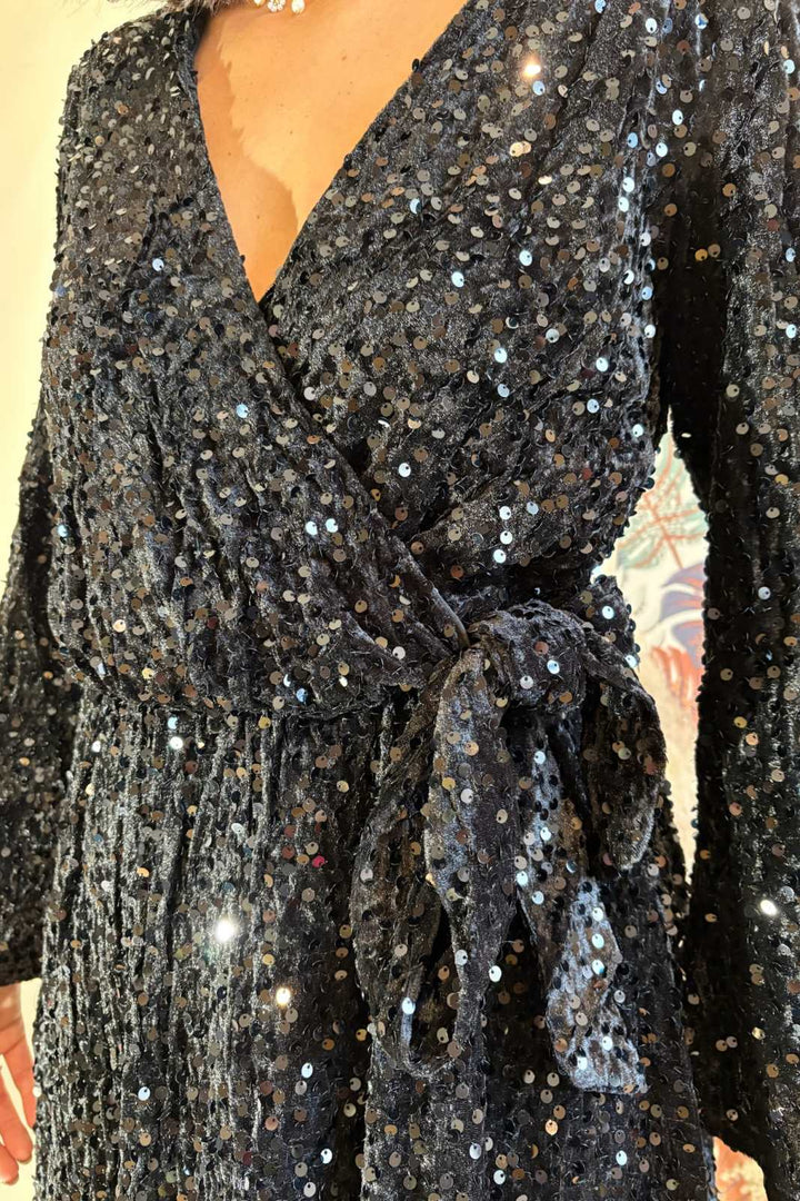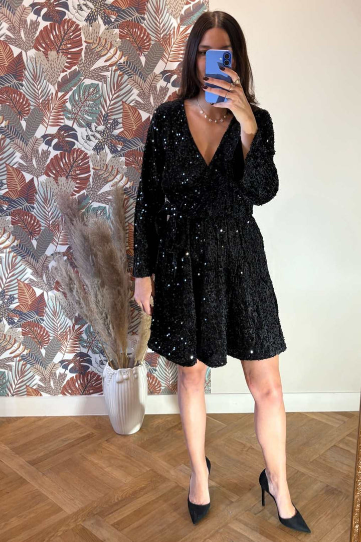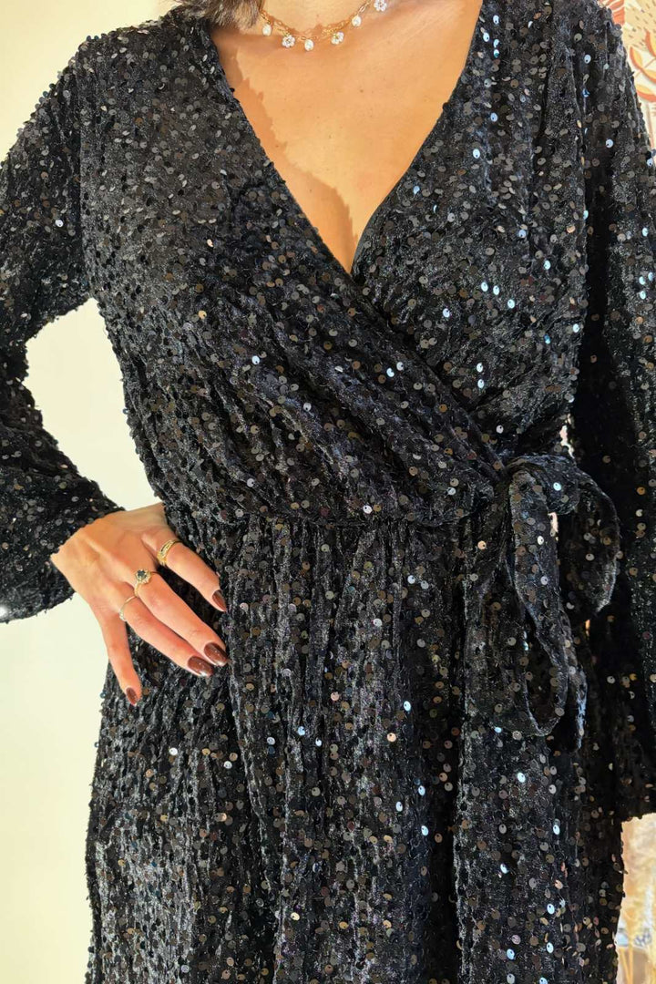 Robe en velours à sequins noirs