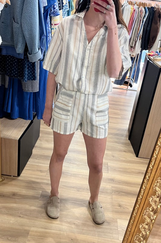 short à rayure beige et noir