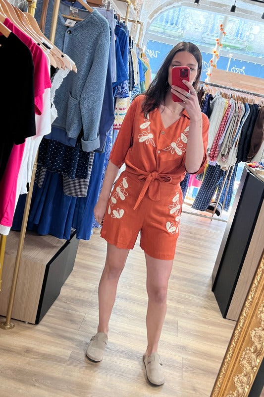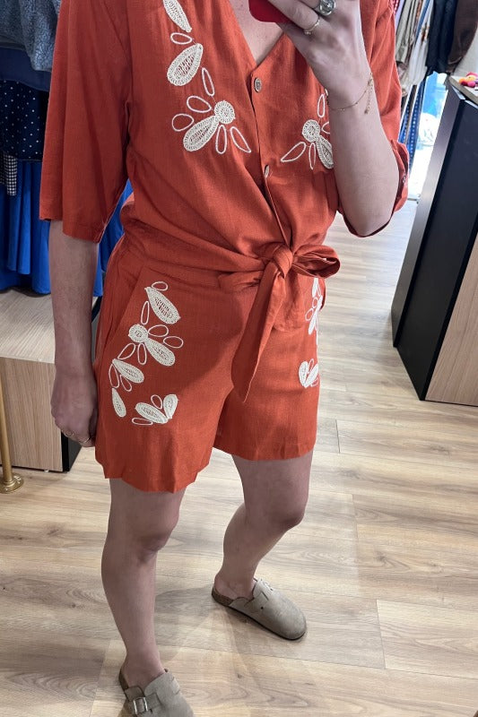 Short terracotta brodé